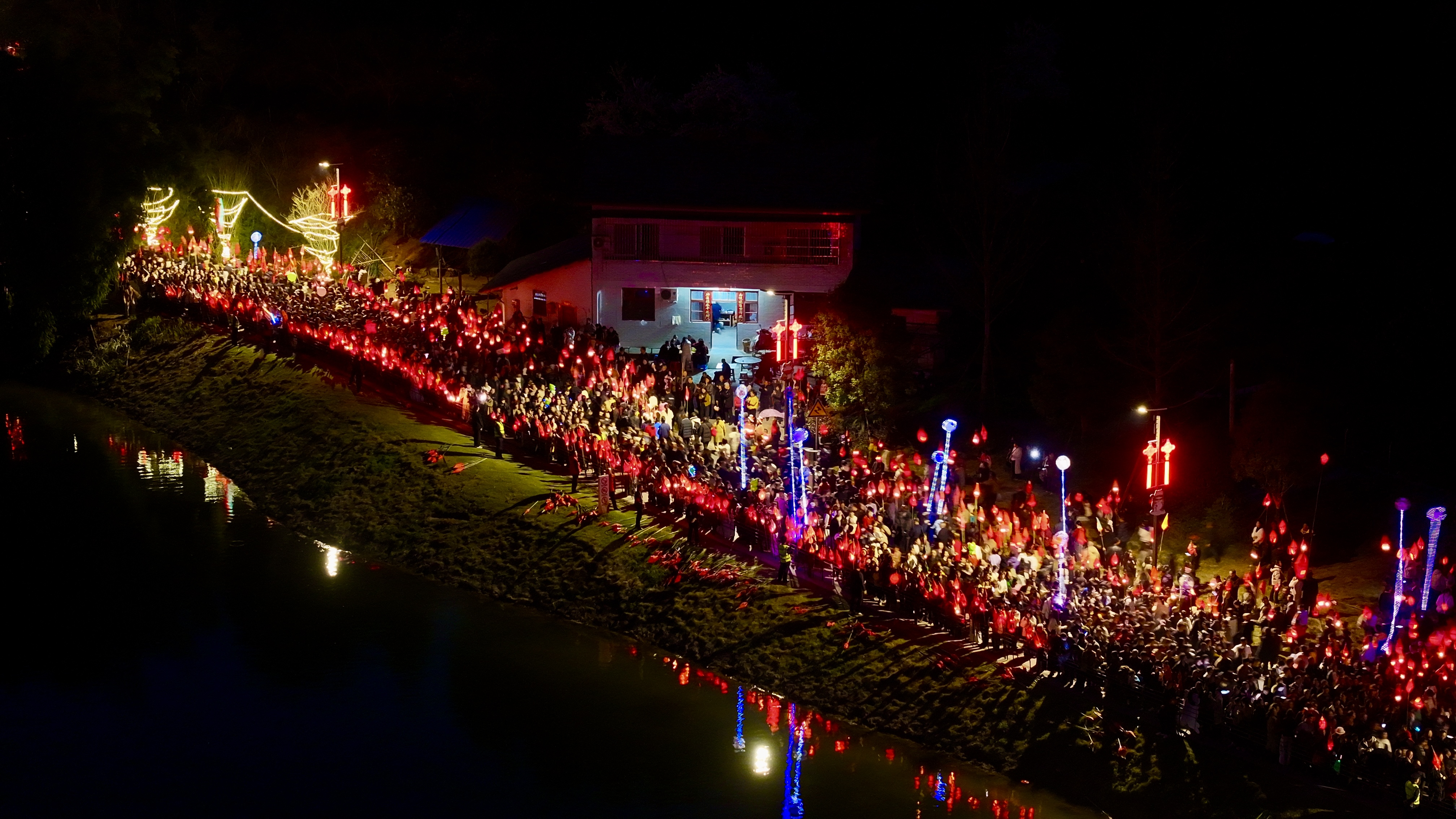 数以万计的“蛴蟆灯”紧随其后,点点灯光逐渐汇成“星河”,2026年蓬溪县“送蛴蟆”民俗活动正式开始。