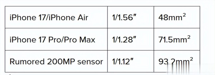 让我们将这款传闻中的新传感器尺寸,与目前苹果iPhone主摄像头的主传感器进行对比,以便更直观地理解其意义: